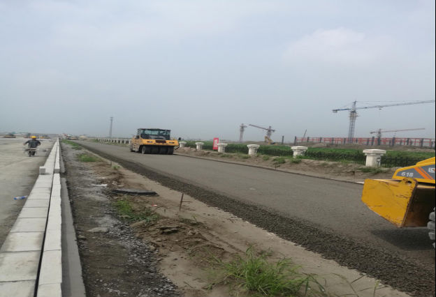 如東經(jīng)濟(jì)開發(fā)區(qū)嘉陵江路(洋口運河—黃山路)工程:完成機(jī)動車道上基層水穩(wěn)攤鋪13387m2,非機(jī)動車道水穩(wěn)攤鋪5658m2,路緣石平側(cè)石鋪設(shè)2000米,右側(cè)人行道12%石灰土施工1625m2。
